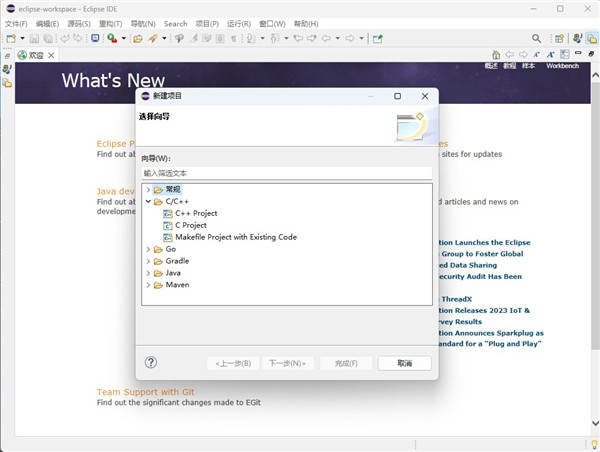 4、点击Yes重启Eclipse,这样就安装成功了,可以新建C++ Project了: