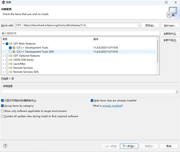 CDT Main Features 和 CDT Optional Features。点击其扩展小标记,只勾选如下选项: