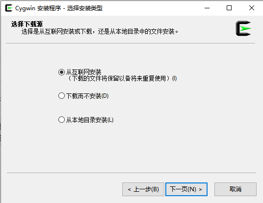 2.在这里是选择软件的安装模式,分别为从internet安装、只下载安装程序不安装、安装已下载的数据包,如果没有安装包的话,这里我们选择第一种比较好。