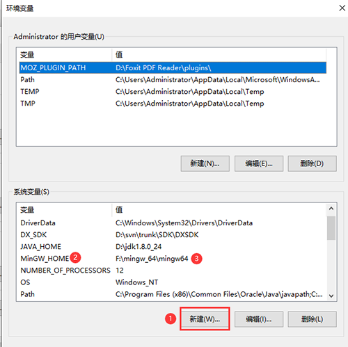 4、点击环境变量,找到系统变量的path变量,在最后加上“;C:\MinGW\bin”。