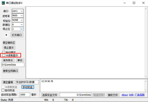 在这里,用户可以使用16进制调试串口的数据,用于检验其他软件的包文。