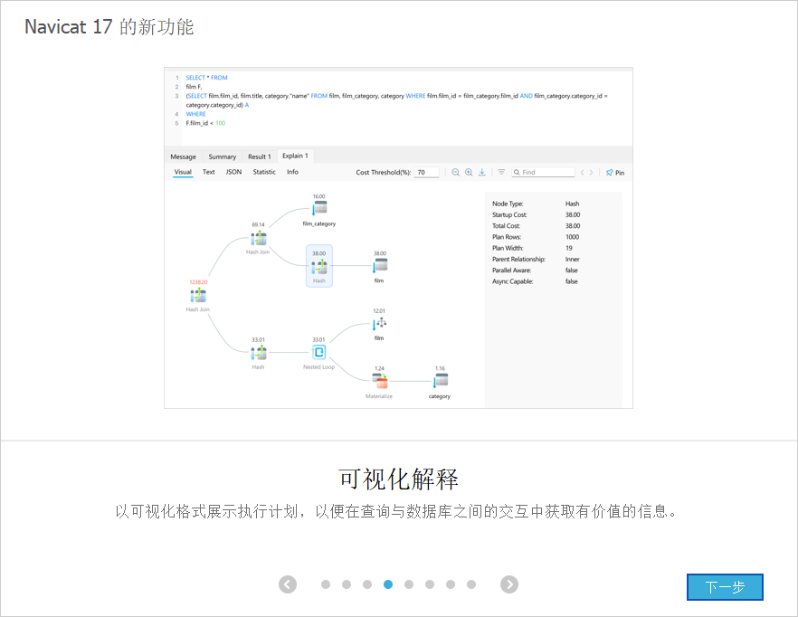 以可视化格式展示执行计划,以便在查询与数据库之间的交互中获取有价值的信息。
