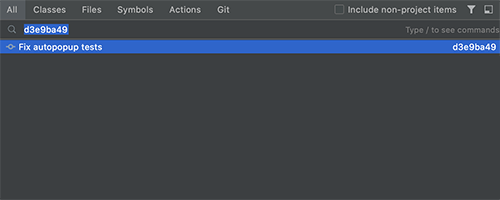 1、我们已经在“到处搜索”对话框中添加了一个Git标签。在其中,您可以找到提交哈希以及消息,标签和分支。