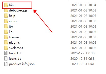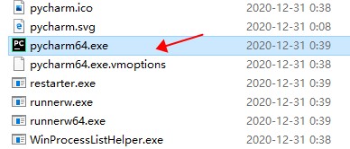 2、在bin文件夹,找到pycharm64.exe,双击即可打开进入pycharm2020.3;