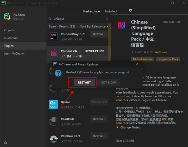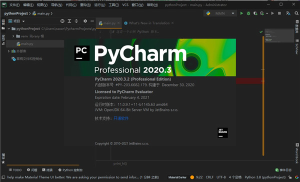 7、至此,pycharm2020.3完成汉化,以上就是全部的安装教程,希望对你有所帮助;