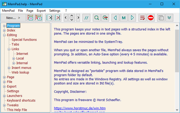 MemPad中文版算得上是一款记事本增强工具了。当然MemPad也是一款很好的笔记软件。尤其对于日常工作中,一些碎片化的东西有很好的效果。而且,挺方便的一点是,解压即可运行。另外的一个突出特色是带有树状目录,这一点非常实用。通常能直观的发现所有的软件。另外,自带的搜索功能,速度上比记事本快很多。而且工具栏上提供了很多便捷的按钮。比如方向键、自动换行等。当时重点还是目录树的操作,你可以进行很多方便的子节的创建及操作。非常的方便。而且提供了导出功能。这样就能非常方便的记录了。最新版已经有中文版的了,这样对于很多英语不是很好的人来说,非常的有利。所以,喜欢的朋友赶紧下载MemPad吧!