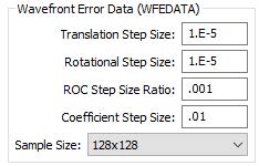 当前的功能允许用户通过链接到光学分析模型或先前生成的线性光学模型文件来计算波前误差,现已扩展为包括与Code V版本10.6或更高版本一起使用。均支持通过法向或轴向下垂变形方向表征表面误差。表面类型目前仅限于没有非球面项的圆锥表面。支持链接到.len或.seq文件。有关更多详细信息,请参见SigFit参考手册的5.20.3节或教程示例3。