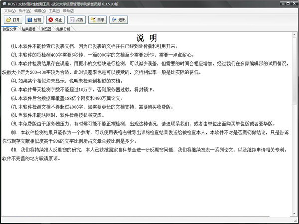 ⑽.检测结果只能作为一个参考,可以使用表格右键导出详细检查结果发送给被检查本人,本软件不对是否剽窃做结论,只是告诉你与现存文献相似度高于80%的文字比例所占文章总数比例是多少。