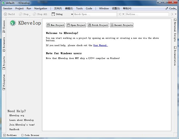 为了实现上述目标,KDevelop集成开发环境提供了许多程序员需要的特性,并且它包括了一些第三方程序的功能,比如make和GNU C++编译器,使之成为开发过程中集成的部分。