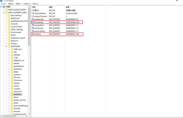 5.RegistryUtil中可以看到读取注册表中 CURRENT_USER 和 LOCAL_MACHINE 处DataNitro的键值,因此我们在对应位置来增加这些键值。