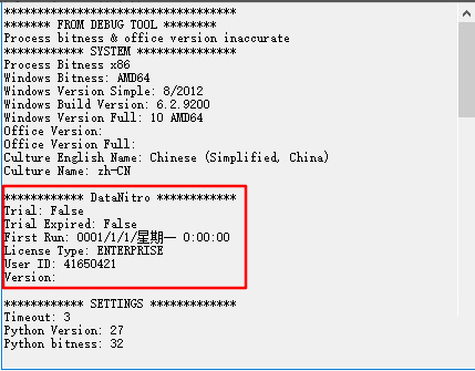 修改后再打开DataNitro Diagnostic来看看,发现Trial处变为False,版本已经是ENTERPRISE。