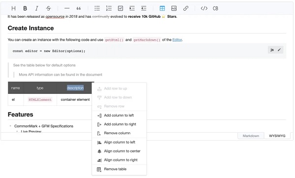 4、Toast UI Editor 是一款利用 JavaScript 和 jQuery 开发的块编辑器。它支持多种文本字体和大小,还可以使用 Markdown 或 WYSIWYG(所见即所得) 编辑模式