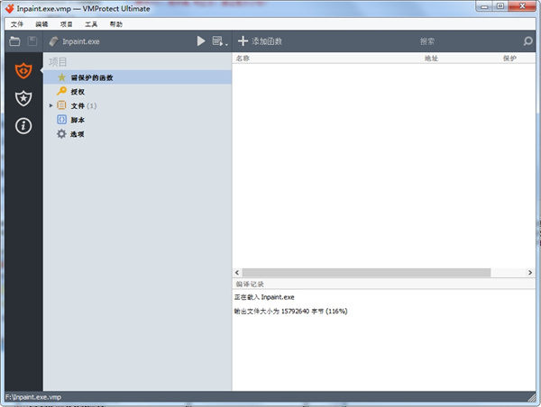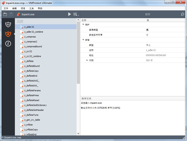 vmprotect的Professional和Ultimate版本拥有一个控制台版本,支持命令行参数,而且可在自动构建过程中使用。该版本完全支持脚本、水印、序列号和VMProtect的所有其他功能。