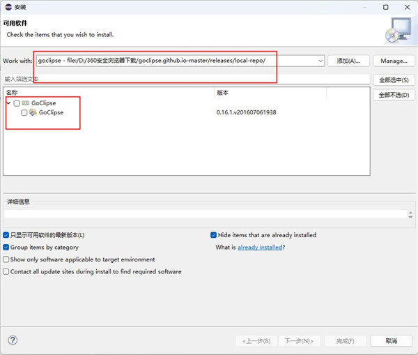2、然后搜索GO,找到我们的插件点击安装即可,小编已经安装饿了所以显示已安装。