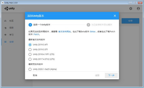 如果本机没有安装Unity,则可以在官方正式版本中选择下载