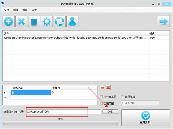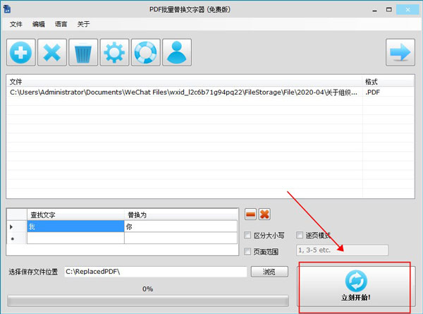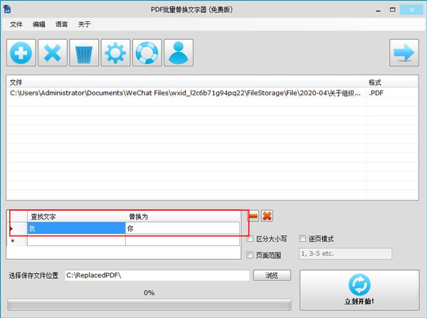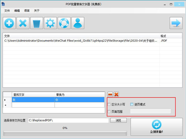 3、替换所有选定PDF文件的特定位置和页面中的文本。