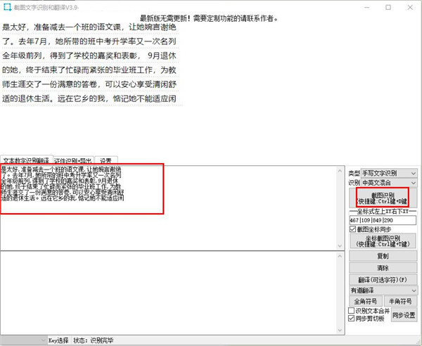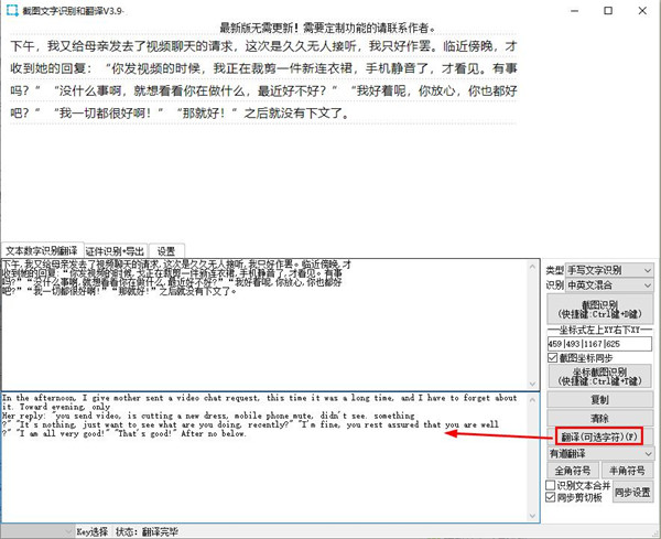 4、翻译按钮:点击翻译识别框内文字,可以选中识别框中单个文字再点翻译