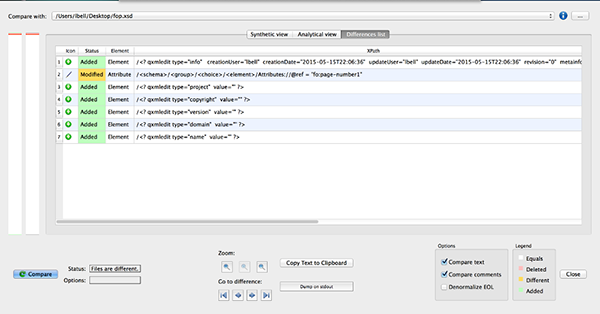 XML Editor具备完整差异与合并解决方案。它提供了目录与文件对比功能、6种不同的差异算法以及多级对比。
