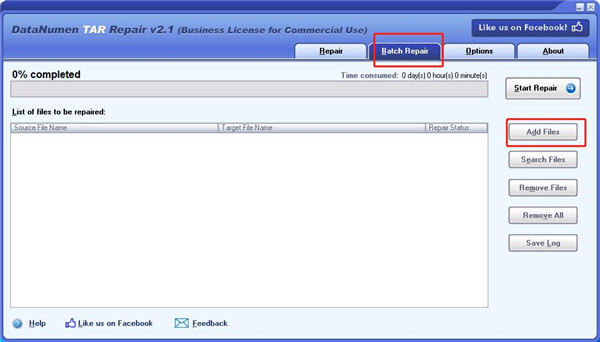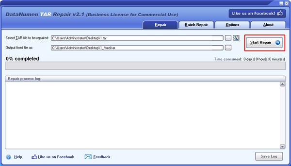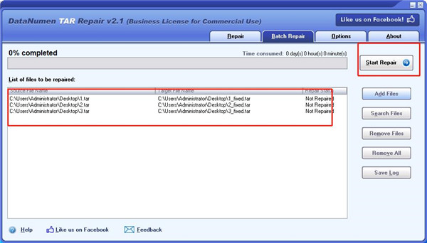 5、添加多个需要恢复的tar添加到软件,点击start repair按钮就可以开始执行修复