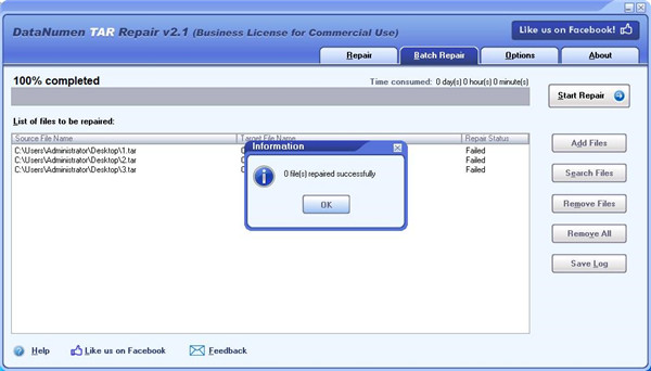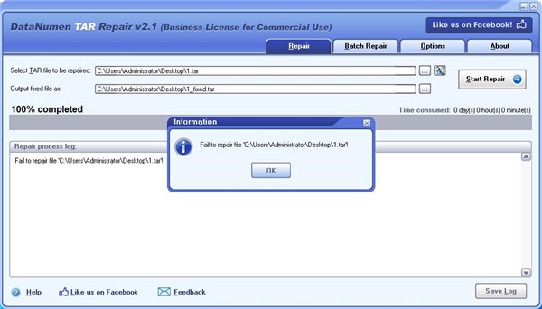 5、支持在客户端计算机上查找并选择要修复的Tar文件