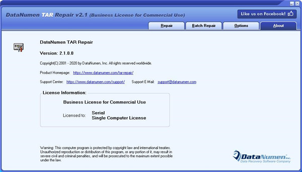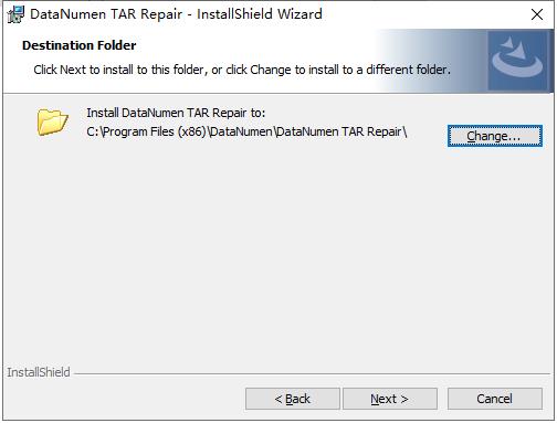 安装向导默认设置的软件默认安装路径为C:\Program Files (x86)\DataNumen\DataNumen TAR Repair