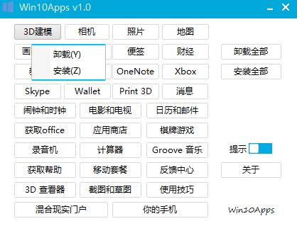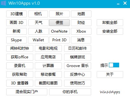 我得说,这个Win10Apps卸载工具简直是强迫症患者的福音啊!看着Win10系统里自带的那些3D建模、地图、天气还有财经之类的软件,平时根本用不上,放在那里占地方看着就心烦,有了这个小工具,一键就能把这些“牛皮癣”清理得干干净净,而且完全不用担心会把系统搞崩,这点真的太重要了。最让我觉得贴心的是,它还留了后悔药,万一哪天突然想用回相机或者便签了,随时能再装回来,不像有些流氓软件卸载了就很难找回。整个界面清清爽爽,支持单个卸载也能一键全清,操作起来就像点外卖选菜一样简单,根本不需要什么复杂的电脑知识,对于我这种懒人来说,简直是装机必备的神器,强烈推荐给那些想精简系统又怕麻烦的朋友! Win10Apps卸载工具使用教程 1、在本站下载并运行Win10Apps。 2、选择需要卸载的软件。(如果要卸载大部分建议卸载全部再安装自己需要的,这样效率会快一点) 3、点击需要卸载的软件,在下拉选项中选择卸载。 4、不一会就提示应用卸载完成了。 5、安装也是一样的操作。 特色功能 1、软件小巧,简单易用。 2、支持单个卸载和卸载全部。 3、支持安装功能,可以安装回来。 4、支持安装全部的程序。