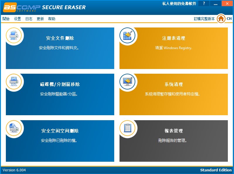 3.使用非常方便,文件擦除器Secure Eraser 支持最高的 Gutmann算法35次擦除,同时还内建了符合美国防部国 U.S. DOD 5220.22-M标准的U.S. DOD 5220.22-M(C and E)擦除算法,能从根本上彻底杜绝软件和硬件恢复工具的恢复