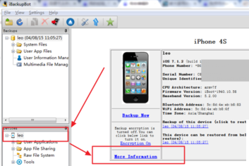 2、点击左下侧的手机根目录,然后显示如右侧所示页面,点击More Information。