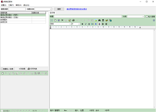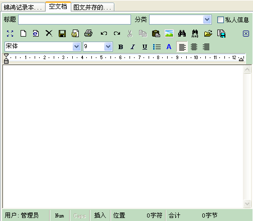 在新增文档、或用鼠标双击信息列表中的文档信息后,软件界面将出现文字编辑区: