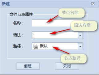 步骤:新建文件(夹)节点按钮-输入节点名称、节点语法、节点位置->完成