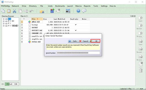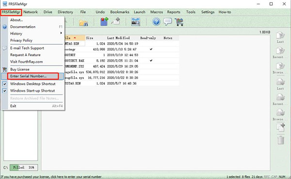 7、双击打开FRSFileMgr软件,点击FRSFileMgr下的Enter Serial Number