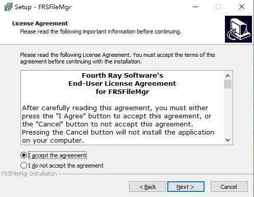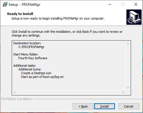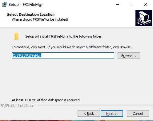 安装向导默认设置的软件默认安装路径为C:\FRS\FRSFileMgr