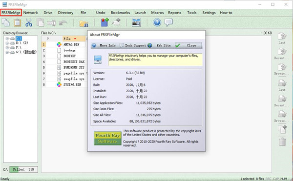 9、点击FRSFileMgr下的About,如下图FRSFileMgr安装完成,可以放心使用软件