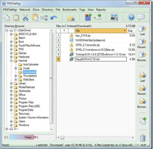 FRSFileMgr电脑版除了允许您浏览目录并查看其中的文件之外,还使您可以快速访问PC上的临时Internet文件