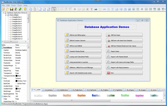 70种内置对象类型。您只需将它们添加到表单上,然后编辑它们的“属性”和“事件”即可根据需要自定义它们。您可以尽可能快地布局图形用户界面