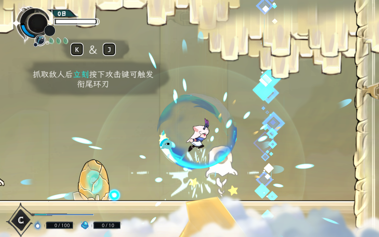 3、“衔尾”是游戏中的一个技巧,类似绳索,可以勾取特定的物品,从而跨越障碍。