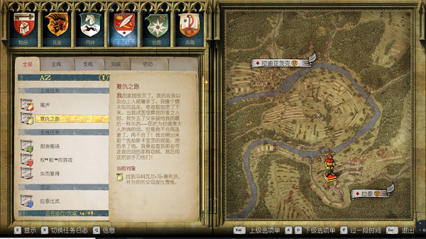 左侧是简报,右侧是详细说明,而右下方红色文字是当前的任务目标。