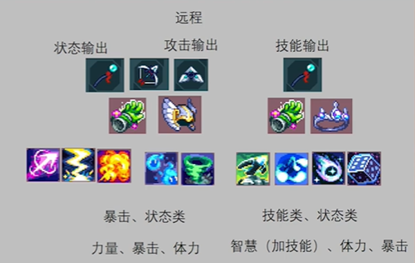 余烬骑士里的流派大致可以分为近战、远程两种攻击形式,攻击输出、技能输出、状态输出三大类别。