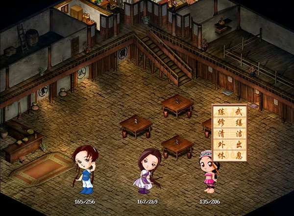 14、修缮、清洁、练武,都是基本功。一旦接受的安排,就会在客栈里面勤加练功,刻苦锻炼。当然你也可以跟她们聊天,送他们礼物,加加好感度。这些将会影响你的终身大事。