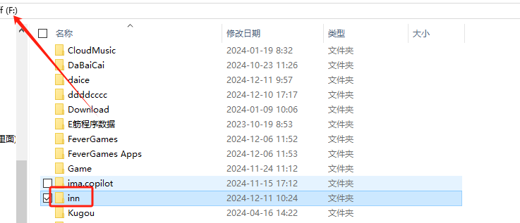 注意:文件夹一定要以“inn”命名,小编以f盘为例
