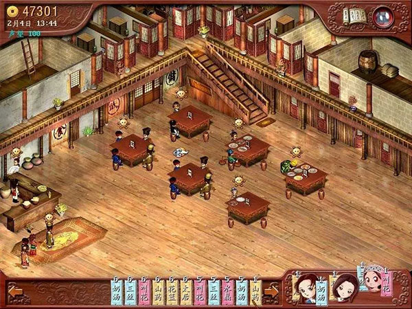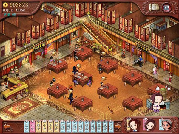 1、仙剑客栈游戏的时间安排看起来是非常“养生”的,10点整理菜单,12点开门,16点收摊,又有三位能力强大的美貌厨娘助阵协助,看起来起来非常轻松?然而,开门营业以后,你就会发现,鼠标点得根本停不下来。