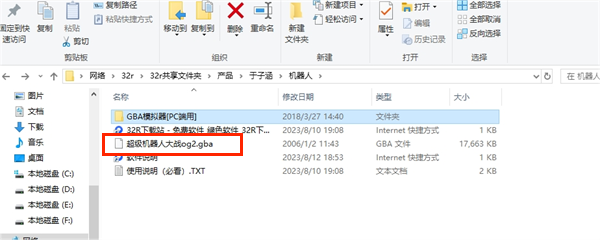 3、在查找范围里找到你下载好的游戏文件路径双击进去,找到"超级机器人大战og2.gba"双击即可进入游戏