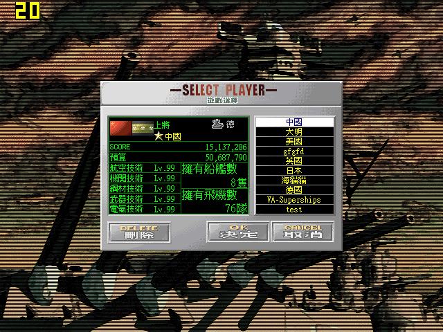 技术开发:共有航空、机关、钢材、武器、电气五项技术可以开发,开发的最高等级为25级。这里透露一个小密技:如果用FPE等修改工具查到等级的地址,将其修改为99级后,就可以生产一些只能从敌人手中回收的特殊强力装备。