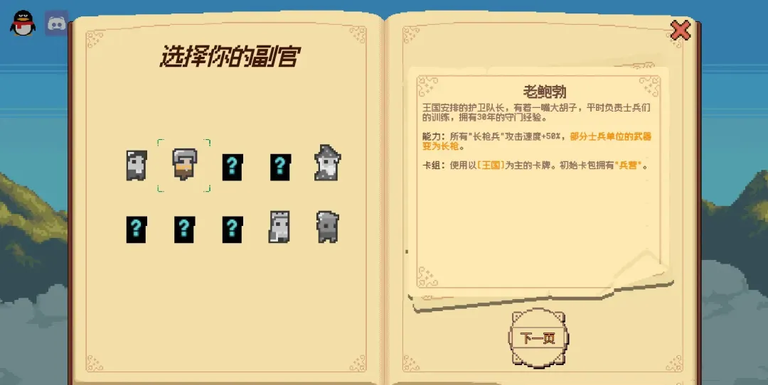 开拓成功结算分数会提升执行官等级,等级提升可以获得天赋点,用来在关卡开始前永久提升天赋获得增益,比如所有建筑最大生命值增加,相邻的建筑生产量增加等等,初始副官史蒂夫,能力是携带更多资源,并且会在食物首次消耗后获得新的食物。携带的卡牌以王国为主。还有完成特定条件成就解锁的老鲍勃、梅林等等。