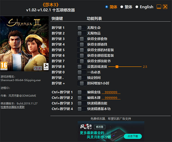 1、下载并进行解压。2、确认莎木3修改器是否适用于你游戏的版本(游戏版本号、发行平台等,不同版本特征不同修改器可能会失效);