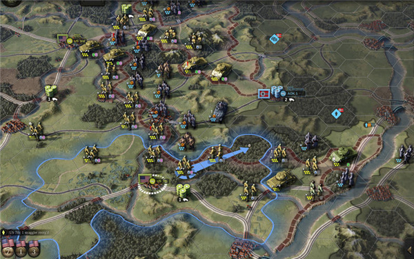 4、游戏中有着后勤补给这一玩法,每个单位都需要补给,如果一个单位未获得补给的话,那么没过一个回合就会变弱,游戏中长按快捷键可以查看补给网络。