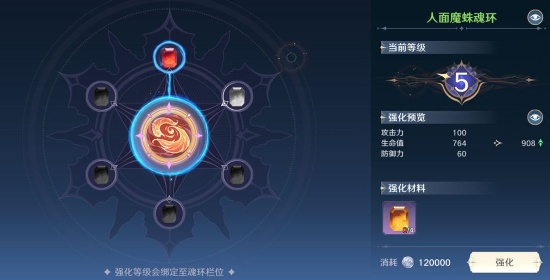 而基础魂环除了需要在【猎魂森林】获取更高年份魂环外,还需要使用各式魂晶进行强化,甚至还能通过【修罗一考】来获取特殊的神赐年份,当然其带来的面板属性与技能效果提升也更为显著。