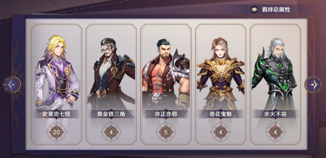 【羁绊】中学员们可以通过培养有特定羁绊的角色来解锁面板属性加成;