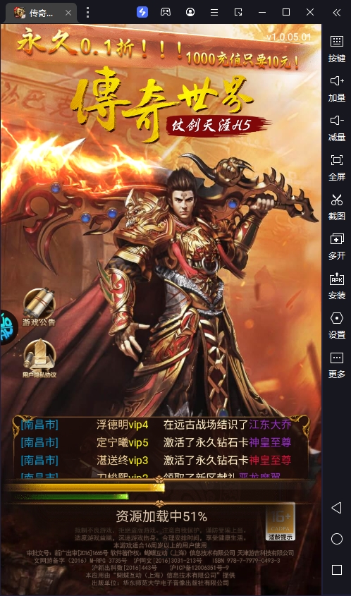 传奇世界之仗剑天涯H5手游电脑版是一款基于安卓模拟器运行的传奇打金类游戏,它相较于玩家们之前所接触的传奇游戏,其最大的优势便是上线就能领取VIP6及海量元宝,加以充值648只需6.48的0.1超低折扣力度,可让你体验最爽的刷怪打金之旅!