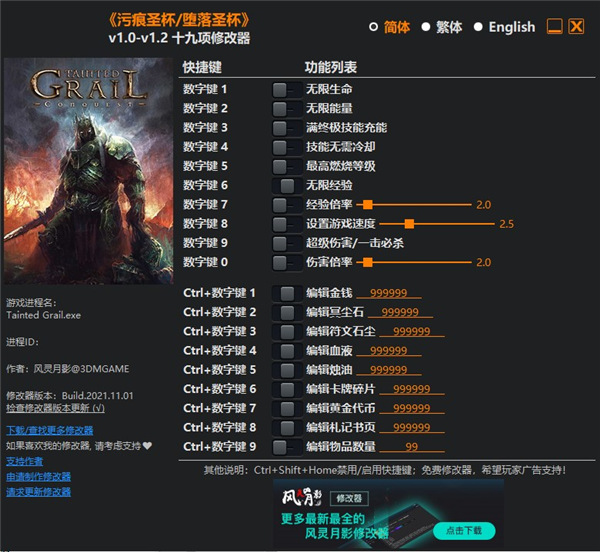 数字键 1 - 无限生命数字键 2 - 无限能量
